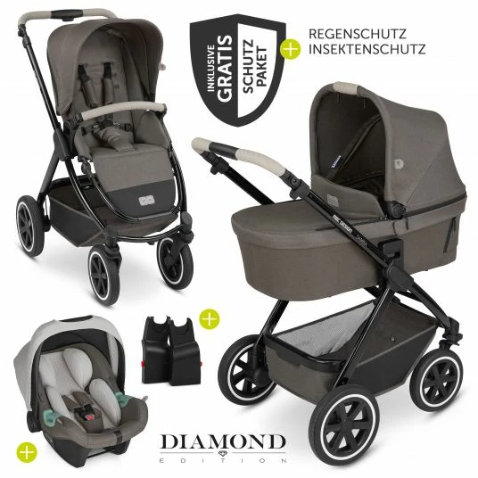 Der Kombi-Kinderwagen Samba – inkl. Babywanne und Sportsitz – Diamond Edition in Herb von ABC Design ist ein sehr gut ausgestatteter Allrounder auf 4 Rädern. Er ist superleicht und bietet durch seine All-Terrain Bereifung mit Luftkammerrädern ein sehr breites Einsatzspektrum. Dank des extrem kleinen Faltmaßes bekommst Du ihn auch in einen kleinen Kofferraum. Im Vergleich zu den anderen Modellen von ABC Design musst Du hierzu nicht mal den Sportwagen-Aufsatz abnehmen. Trotzdem bietet er den gleichen Komfort wie die anderen Modelle.