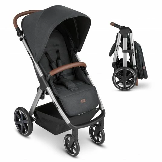- Ausstattung: höhenverstellbarer Schiebegriff, ausklappbares Verdeck mit Sichtfenster und Belüftung, Liegeposition, große Beinfreiheit beim Schieben, aufklappbarer Schutzbügel, Einhand-Faltung, ECO-Leder am Griff und Schutzbügel, leicht zugänglicher Einkaufskorb, UV-Schutz 50+, modernes und sehr stabiles Gestell, 9,3 kg leicht