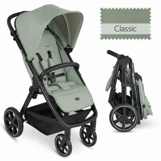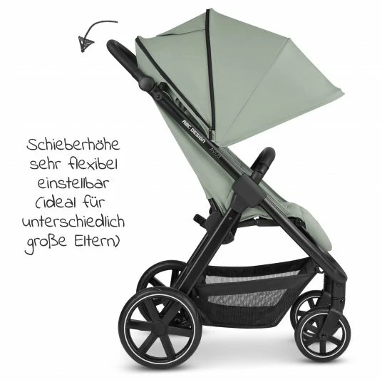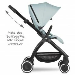 - Ausstattung: höhenverstellbarer Schiebegriff, ausklappbares Verdeck mit Sichtfenster und Belüftung, Liegeposition, große Beinfreiheit beim Schieben, aufklappbarer Schutzbügel, Einhand-Faltung, ECO-Leder am Griff und Schutzbügel, leicht zugänglicher Einkaufskorb, UV-Schutz 50+, modernes und sehr stabiles Gestell, 9,3 kg leicht