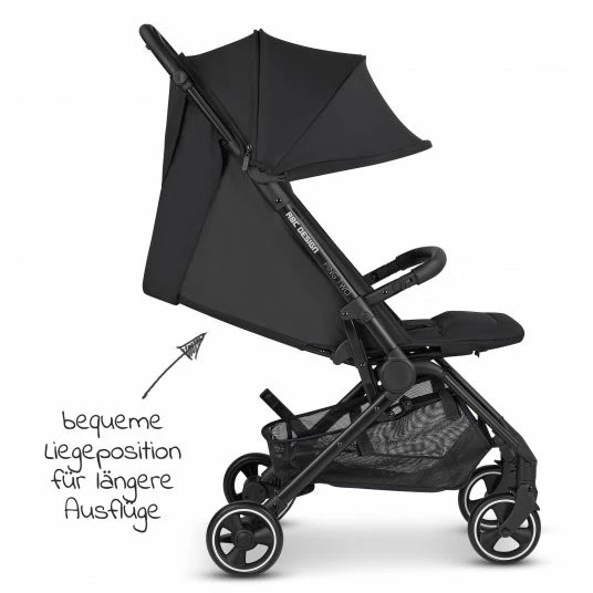 Neben einer komfortablen Liegeposition bietet er ein großes Verdeck mit UV-Schutz. Die vier pannensicheren Weißwand-Reifen sind dank Einzelrad-Federung auch sehr komfortabel. Im Handumdrehen kannst Du den Reisebuggy mit einer Hand falten und mit dem praktischen Gurt super bequem tragen.
