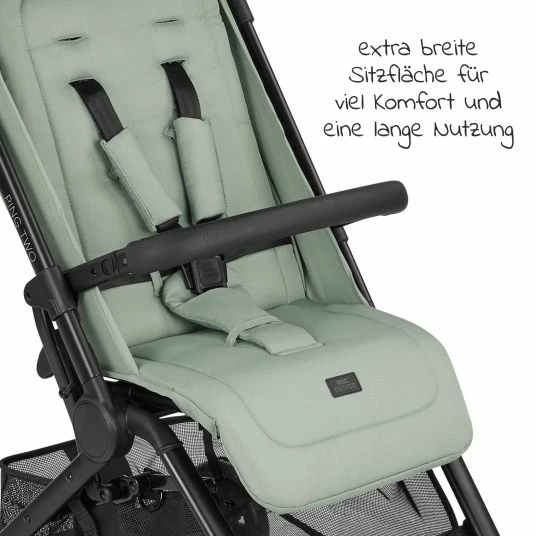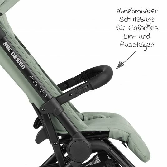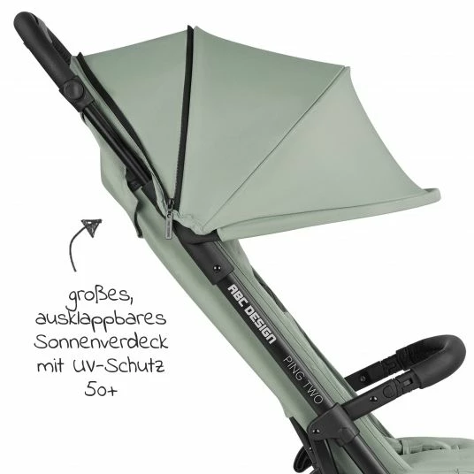 Das Design des Ping Two im Farbton Pine vereint intelligente Funktionen mit modernem Stil und zeitlosem Chic. Ob das mattschwarze Chromgestell, der exklusive, hellgrรผne Stoff, edle Lederoptik am Schieber oder am Schutzbรผgel, oder die optisch eindrucksvollen Weiรwand-Reifen โ der Ping Two bietet zahlreiche Highlights.