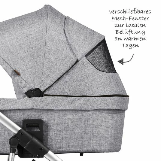 Die Babywanne ist mit einer hochwertigen Matratze ausgestattet und bettet Dein Neugeborenes weich und bequem. Geschützt wird es von der passenden Wannenabdeckung und einem großen Verdeck. Das Verdeck ist mit einem UV-Schutz 50+ ausgestattet. Für warme Tage ist ein Belüftungsfenster integriert um einen Hitzestau zu vermeiden. Falls Dir der Wagen beim nächsten Restaurantbesuch zu sperrig ist, nimmst Du die Wanne einfach ab und trägst sie per Hand am stabilen Tragegriff. Wenn Du für den Transport im Auto wenig Platz hast, kannst Du die Wanne einfach zusammenfalten.