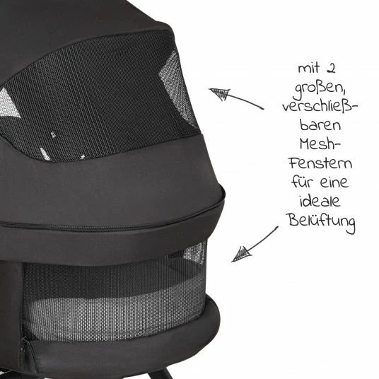 Für Sicherheit sorgen dabei ein gepolsterter 5-Punkt-Gurt und ein Schutzbügel. Praktisch: Für einen leichten Einstieg kannst Du den Bügel einfach aufklappen oder ganz abnehmen. Das große Verdeck schützt vor Wind und Wetter. Durch den UV-Schutz 50+ schützt es zuverlässig die empfindliche Haut Deines Kindes. Dank des Sicht- und Belüftungsfensters aus Mesh-Gewebe behältst Du Dein Kind jederzeit im Blick.