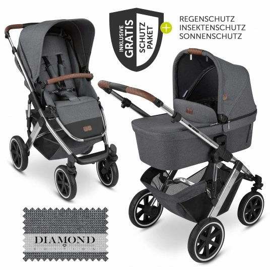 Best Pirce 🔔 ABC Design Kombi-Kinderwagen Salsa 4 Air – inkl. Babywanne & Sportsitz mit XXL Zubehörpaket – Diamond Edition – Asphalt – Collection 2023 😀