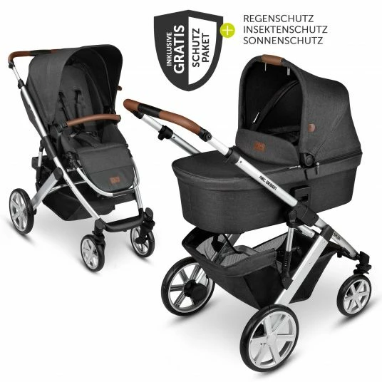 - Besonderheiten: faltbare Babywanne mit großem Lüftungsfenster, sehr geräumiger Einkaufskorb, Blickrichtung wählbar, Schieber-Griff & Schutzbügel in edler Lederoptik, viel Beinfreiheit beim Schieben, sehr kompakt faltbar