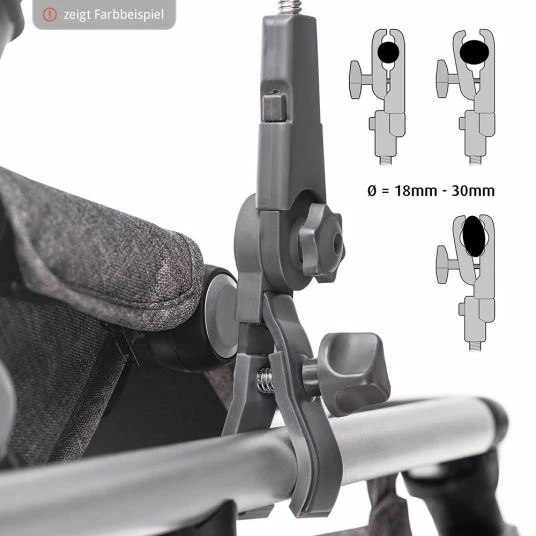 - Kinderwagen und Buggys anderer Hersteller: Klemmbefestigung für Rohrdurchmesser von 18 bis 30 mm geeignet