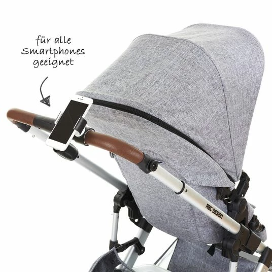 The Universal mobile phone holder β White/Black from ABC Design is a practical way to get to your smartphone quickly and easily on the go. No unnecessary waiting in your pocket that costs time and nerves. The adapter is quickly and easily attached to the pushchair’s slide. So you always have your smartphone in view and can answer calls much faster or also use the navigation app freely. The size can be adapted to different mobile phone models. The holder itself can be turned and tilted as desired. You can also attach the holder to regular shopping items.