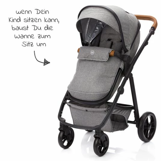 Das 3 in 1 Kinderwagenset Fill Panther Hellgrau Melange mit der zum Sportsitz umbaubarer Babywanne ist ein innovatives Kinderwagenset, welches den modernen Eltern von heute größtmöglichen Nutzen bietet. Es besteht aus einem Gestell, einer umbaubaren Babywanne und einer Gr. 0 Babyschale. Du kannst die Babywanne sowohl in als auch entgegen der Fahrtrichtung aufsetzen und zu einem vollwertigen Sportsitz mit 5-Punkt-Gurt umbauen. So kommen auch kleine Mitfahrer, die schon selbstständig sitzen können, voll auf ihre Kosten.