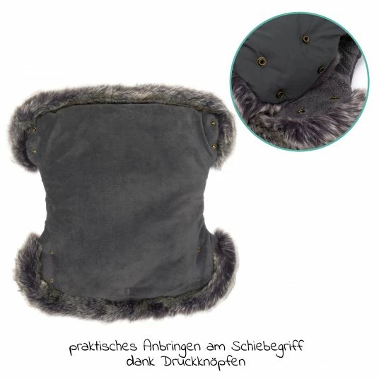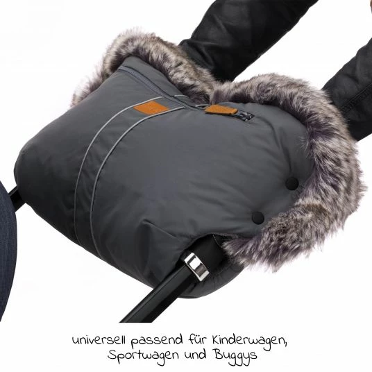Wenn sich die kühlere Jahreszeit anbahnt, werden auch die Hände am Schiebegriff des Kinderwagens schnell kalt. Mit dem Handwärmer mit Fell Halifax – Hellgrau Melange bleiben Deine Hände und Handgelenke kuschelig warm, so dass Du auch in der Übergangszeit und im Winter gerne spazieren gehst. Das flauschige Coralfleece-Futter fühlt sich dabei besonders angenehm an Deinen Händen an. Der kuschelige Fellkragen lädt zusätzlich zum Wohlfühlen ein und macht den Handwärmer zu einem schönen Hingucker.