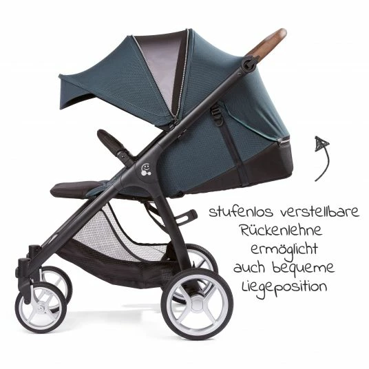 Dank der großen Sitz- und Liegefläche hat Dein kleiner Schatz im Buggy genug Platz sobald er sitzen kann bis ca. 4 Jahre. Die strapazierfähigen Räder mit Gummimantel ermöglichen es Dir schnell und wendig vorwärts zu kommen. Auf unebenem Untergrund, wie z.B. Waldwegen, kannst Du die schwenkbaren Vorderräder leicht per Klick feststellen um noch flexibler zu sein. Pluspunkt: Der Schiebegriff mit Lederimitat lässt sich per Knopfdruck in der Höhe verstellen, das geräumige Gepäcknetz ist einfach zugänglich.