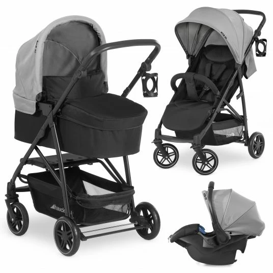 Schon ab der Geburt kann es im Hauck Rapid 4R Plus Trioset losgehen: In der kuschelig weich gepolsterten Babywanne liegt Dein Baby vom ersten Tag an bequem und sicher. Dabei begleitet euch der sportliche, vierrädrige Kinderwagen und Buggy über fast jeden Untergrund.