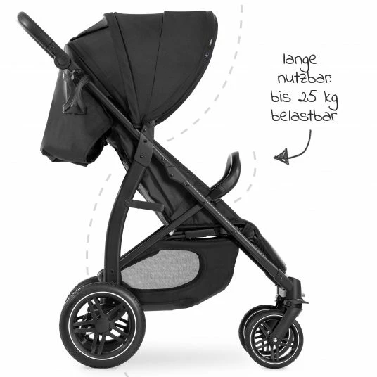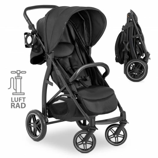 Sei es in der lebhaften Stadt oder bei einem Ausflug in die Natur auf holprigen Wald- und Feldwegen: Der Hauck Rapid 4D AIR in Black bietet Dir und Deinem kleinen Weltentdecker auf jedem Untergrund einen hervorragenden Sitz- und Fahrkomfort. Große Lufträder hinten und pannensichere All-Terrain Räder vorne meistern alle Unebenheiten und federn diese gekonnt ab. Die 360° schwenkbaren Vorderräder sind sehr wendig erweisen sich im Stadtleben als besonders vorteilhaft.