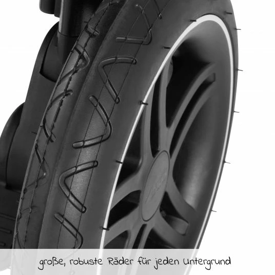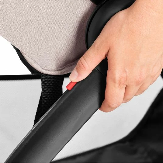 Damit der kleine Schatz immer sicher mitfährt, bieten ein verstellbarer Schutzbügel und ein 5-Punkt-Gurt Sicherheit. Für einen gesicherten Stand sorgt die Feststellbremse des Buggys. Der Sicherheitsbügel punktet mit einer angenehm weichen Oberfläche in edler Lederoptik und ermöglicht viel Bewegungsfreiheit.