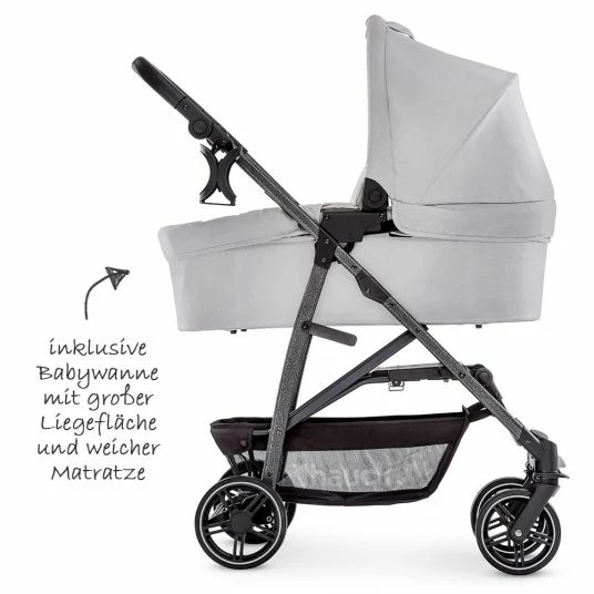 In der Babywanne liegt schon Dein Neugeborenes super bequem. Sie ist mit einer Matratze und einem Verdeck ausgestattet und so der perfekte Platz fรผr kleine Schlafmรผtze. Sobald Dein Kind selbststรคndig sitzen kann, tauscht Du sie gegen den Sportwagenaufsatz aus – dieser trรคgt Kinder bis zu einem Gewicht von 25 kg. Das geht superleicht und ohne zusรคtzlichen Adapter. Der Sitz ist weich auch weich gepolstert und kann dank verstellbarer Rรผckenlehne und Fuรstรผtze bis in die Liegeposition gebracht werden. So darf Dein Schatz auch hier in aller Ruhe schlafen. Gehalten wird er dabei von einem 5-Punkt-Gurt und einem Schutzbรผgel. Um blendende Sonnenstrahlen und kรผhlen Wind kรผmmert sich das groรe Verdeck.