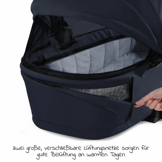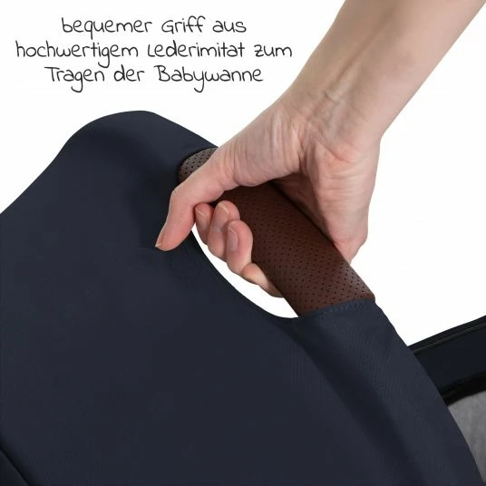 Die Babywanne ist mit einer hochwertigen Matratze samt atmungsaktivem Baumwollbezug ausgestattet und bettet Dein Neugeborenes weich und bequem. Geschützt wird es von der passenden Wannenabdeckung und einem extra großen Verdeck. Unter der Matratze ist der Boden mit Ventilationsöffnungen versehen, damit sich keine Feuchtigkeit sammeln kann. Das Verdeck ist mit einem UV-Schutz 50+ ausgestattet. Dein Baby hat dank der zwei XXL-Panoramafenster frische Luft sowie freie Sicht in Rücken- und Bauchlage. Falls Dir der Wagen beim nächsten Restaurantbesuch zu sperrig ist, nimmst Du die Wanne einfach ab und trägst sie per Hand am stabilen Tragegriff. Wenn Du für den Transport im Auto wenig Platz hast, kannst Du die Wanne einfach zusammenfalten.