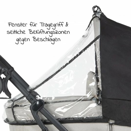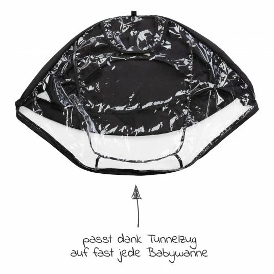 Das durchsichtige Material des Regenschutzes ermöglicht das Beobachten der Umgebung, während du Deinen Schatz immer im Blick haben kannst. Damit das Verdeck nicht beschlagen kann und die Luft darunter angenehm bleibt, ist das Verdeck mit zwei Belüftungszonen ausgestattet. Durch die praktische Aussparung für den Tragegriff kannst Du die Babywanne auch mit dem Regenschutz sehr gut tragen.