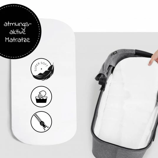 Die kuschelig weiche, atmungsaktive Matratze bietet besonders viel Komfort. Selbst bei lรคngeren Spaziergรคngen sorgt sie fรผr ein angenehmes Schlafklima. Die Wannenabdeckung bietet zusรคtzlichen Schutz und lรคsst sich einfach รถffnen oder komplett abnehmen.