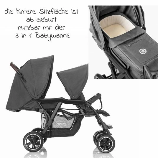 Der Hoco Tandem Geschwisterwagen bietet viel Komfort fΓΌr Dich und Deine Kinder. Er ist leicht, kompakt und platzsparend, ohne an Sicherheit einzubΓΌΓen. Die beiden hintereinander angeordneten Sitzeinheiten eignen sich fΓΌr Kinder unterschiedlichen Alters oder Zwillingskinder ab dem Sitzalter (ca. 6 Monate). Mit seinen 13 kg Eigengewicht gehΓΆrt er zu den Leichtgewichten unter den Tandem-Kinderwagen und ist kaum breiter als ein gewΓΆhnlicher Kinderwagen.