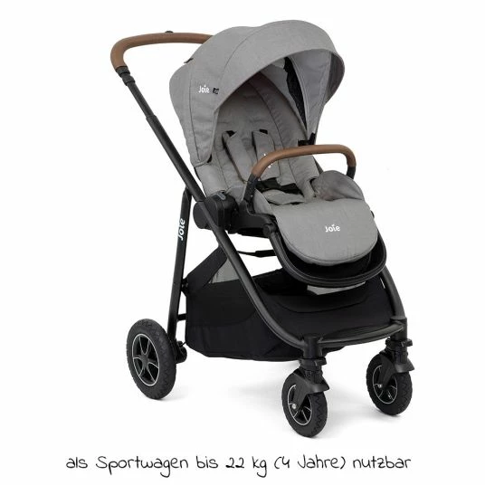 Mit dem 2in1 Kombi-Kinderwagen-Set Versatrax – Gray Flannel mit Babywanne Ramble XL, Getränkehalter, Regenschutz & Adapter kommt Joie dem perfekten Kinderwagen noch ein Stück näher. Der robuste Allrounder überzeugt mit klassischen Ausstattungsmerkmalen, wie einer verstellbaren Rückenlehne, einem großen Verdeck und mitwachsendem 5-Punkt-Gurt mit SoftTouch-Polsterung. Mit den gummierten, Schaumstoffgefüllten Reifen mit Einzelfederung bist Du auf jedem Untergrund laufruhig unterwegs. Außerdem ist der Versatrax mit einem höhenverstellbaren Schieber mit einem Bezug aus Lederimitat ausgestattet. Praktisch: Mit der Babywanne Ramble XL kannst Du den Kinderwagen bereits ab der Geburt nutzen.