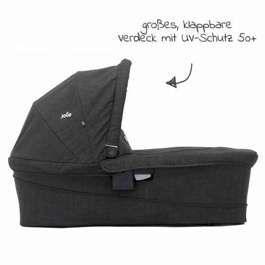 Mit der Babywanne Ramble XL für Versatrax, Versatrax E – Pavement inkl. Regenschutz kannst Du Deinen hochwertigen Joie-Sportwagen bereits ab der Geburt nutzen. Sie ist mit einem großem, klappbarem Verdeck mit UV-Schutz 50+, Schutzdecke, weicher Innenverkleidung und Matratze ausgestattet.