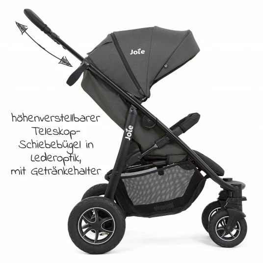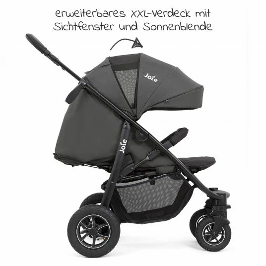 Der Joie Buggy & Sportwagen Litetrax 4 DLX Air mit Luftreifen, Teleskopschieber & Regenschutz in Shale ist der perfekte Stadt-, Land- und Reisebegleiter. Dank der pannensicheren, schaumstoffgefΓΌllten Vorderreifen und den luftgefΓΌllten Hinterreifen meistert der Litetrax 4 DLX Air unebenen Boden spielend leicht.