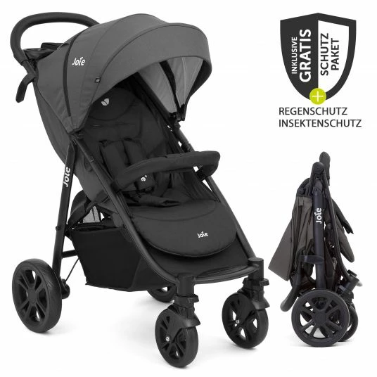 Der Buggy Litetrax 4 – Coal von Joie – Kollektion 2022 mit Schieber-Ablagefach, Regen- und Insektenschutz punktet mit Features wie einem extra großen Verdeck, vollgefederten Rädern und einer bis in die Liegeposition verstellbaren Rückenlehne. Vergleicht man ihn mit seinem Vorgängermodell, fällt auf, dass er mit noch strapazierfähigeren Stoffen ausgestattet ist, die jetzt auch wasserabweisend wirken und denen Regen so nicht viel anhaben kann. Außerdem hat er im Vergleich zum Vorgänger einen edlen Schieber aus Lederimitat und einen zusätzlichen Knopf in der Sitzmitte, der den Einhand-Faltmechanismus noch sicherer macht. Im Set enthalten ist auch ein praktischer Regenschutz.