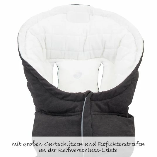 Der Joie Fußsack Therma für Mytrax ist mit praktischen Gurtschlitzen und einer rutschfesten Rückseite ausgestattet. So hält er während des Spaziergangs sicher im Kinderwagen. Der weiche Fleece im Inneren ist angenehm warm und der wind- und wasserabweisende Außenstoff sorgt für Schutz bei jedem Wetter. Dank des mittigen Reißverschlusses lässt sich der Fußsack komplett öffnen. In der Dämmerung sind der Fußsack und sein kleiner Passagier dank eingearbeiteter Reflektoren entlang des Reißverschlusses für Autofahrer gut zu sehen.