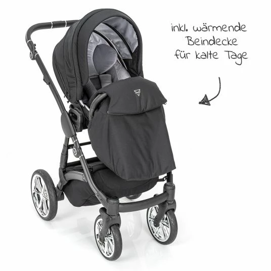 - Ausstattung: kugelgelagerte Luftkammerräder (28 cm), schwenkbare und feststellbare Vorderräder (22 cm), 5-fach höhenverstellbarer Schieber, 5-Punkt-Gurt, umsetzbare Sitzeinheit, 5-fach verstellbare Fußstütze, 4-fach verstellbare Rückenlehne mit einer Hand bis in Liegeposition verstellbar, großes Verdeck mit Belüftungsöffnung und UV-Schutz 50+, abnehmbarer, aufklappbarer Frontbügel mit Durchrutsch-Schutz, Sitzauflage, Feststellbremse , Babywanne mit Belüftungssystem