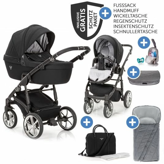- Elegantes 2in1 Exklusivmodell mit Zubehör: inkl. Deluxe Winterfußsack, Handmuff & Schnullertasche uvm.
