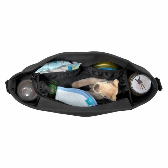Die Kinderwagentasche wird mit den Kinderwagenhaken direkt am Kinderwagen befestigt, Getränke, Snacks und andere Kleinigkeiten können so einfach verstaut werden. Mit einem großen Hauptfach und einer übersichtlichen Innenaufteilung ist der Buggy Organizer ein echtes Platzwunder. Ist man ohne zusätzliche Tasche unterwegs, finden auch Schlüssel und Portemonnaie einen Platz. Dank Reißverschluss ist alles sicher verstaut.