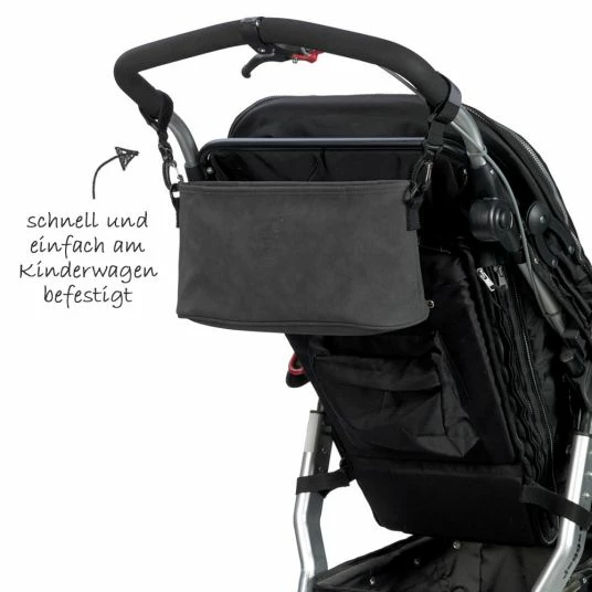 Der vegane Buggy Organizer Tender – Anthracite von Lässig in schlichter Veloursoptik ist das Organisationstalent für Eltern, die unterwegs alle Essentials schnell griffbereit haben wollen. Das hochwertige Außenmaterial, das an echtes Leder erinnert, ist zurückhaltend und passt wunderbar zu jedem Style.