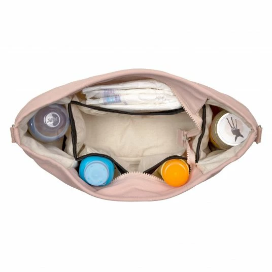 Das große Hauptfach lässt sich sicher mit einem Reißverschluss verschließen. In zwei weiteren, seitlichen Fächern kannst Du Fläschchen und Gläschen kippsicher verstauen. Der Buggy Organizer lässt sich einfach mit Karabinern am Schiebegriff Deines Buggys oder Kinderwagens befestigen und wieder abnehmen. Auf diese Weise lässt er sich flexibel anbringen und ist so im Alltag und auf Reisen sehr nützlich.