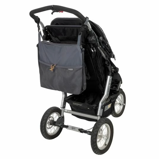 Die kompakte Kinderwagentasche ist zwar ein Leichtgewicht, verbirgt aber in ihrem Hauptfach eine Menge Stauraum. Zwei praktische Netztaschen auf der Vorderseite und ein kleines Reißverschlussfach im Innenraum ermöglichen das gezielte Verstauen von kleineren, alltäglichen Sachen, die man gerne griffbereit hat. Schlüssel, Handy, Schnuller und Co. sind somit auch praktisch aufbewahrt.