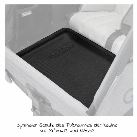 Bei regelmäßigem Gebrauch Deines Fahrradanhängers kommt auch so einiges in den Innenraum was Du lieber draußen hättest. Die Queridoo Schutzwanne für Zweisitzer für den Fußraum Schwarz bietet perfekten Schutz vor Schmutz und Nässe. Ideal wenn die lieben Kleinen mal wieder durch zahlreiche Pfützen gesprungen sind oder mit viel Sand in den Schuhen einsteigen.