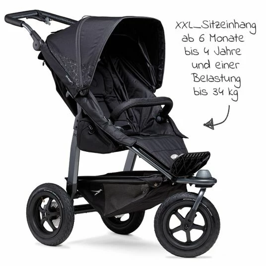 Der Buggy & Sportkinderwagen Mono mit XXL-Sportsitz – Schwarz ist die konsequente Weiterentwicklung der bewährten TFK-Klassiker Trail und Adventure. Wie bei seinen Vorgängern werden auch hier Qualität und Sicherheit großgeschrieben.