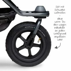 Er ist ein verlässlicher Allrounder und dank großer, pannensicherer Luftkammerräder 12 Zoll (30 cm) auf nahezu jedem Terrain einsetzbar. Nicht nur beim Wandern sondern auch beim Bummel durch die Stadt macht der Kombi eine gute Figur. Komfort für Kinder und Eltern wird hier nämlich großgeschrieben – und das von Anfang an. Im Set enthalten sind zwei umbaubare Wannen. Diese innovativen Kombi-Einheiten (Wanne & Sitz) mit Komfortmatratzen zählen zu den größten auf dem Markt. Du kannst sie sowohl in als auch entgegen der Fahrtrichtung aufsetzen und zu vollwertigen Sportsitzen mit 5-Punkt-Gurt umbauen. So kommen auch kleine Mitfahrer, die schon selbstständig sitzen können, voll auf ihre Kosten.