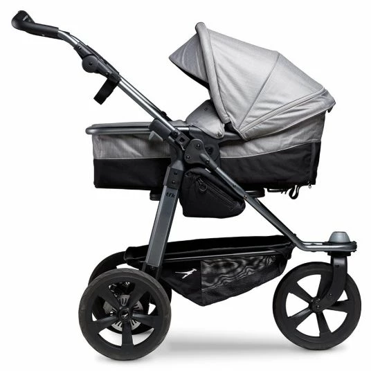 Der Kombi-Kinderwagen Mono mit zum Sportsitz umbaubarer Babywanne – Grau ist die konsequente Weiterentwicklung der bewährten TFK-Klassiker Trail und Adventure. Wie bei seinen Vorgängern werden auch hier Qualität und Sicherheit groß geschrieben.