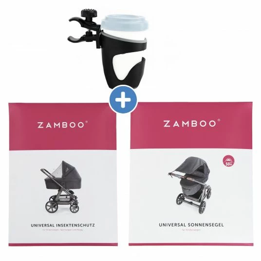 Das 3-teilige Sommer- & Schutzset für Kinderwagen von Zamboo gibt es nur bei babyartikel.de und lässt euch ganz entspannt in die warme Jahreszeit mit dem Kinderwagen starten. Mit dem Zamboo Getränkehalter hast Du Dein Lieblingsgetränk immer direkt am Kinderwagen greifbar. Mit einem Schraubverschluss versehen, passt er seitlich an jedes Gestell oder an einen Handlauf mit einem Durchmesser von bis zu 3 cm.