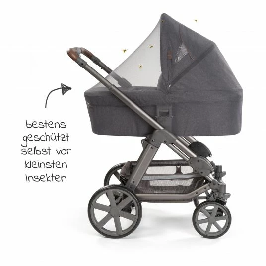Due to the elastic band the insect net can be used very variably. No matter whether you want to use it for your estate stroller, the light travel buggy or the travel bed. It can also be used for baby bathtubs, baby carriages, bassinets, baby carriages, baby cradles and much more.